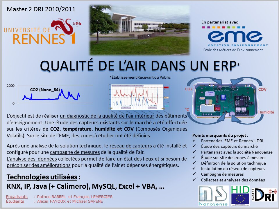 A master's degree, ICT (Information and communications technology) engineering for eco-activities (ITEA ex DRI) which is a specialization of the Master EEA at ISTIC. This course aims to prepare students (in the second year) for engineering-level positions with skills in the design, integration and implementation of eco-technologies, both in the building sector and in the optimisation of industrial processes in a sustainable development perspective. This course is unique in France in this sector of activity, combining training for technical managers and engineers.