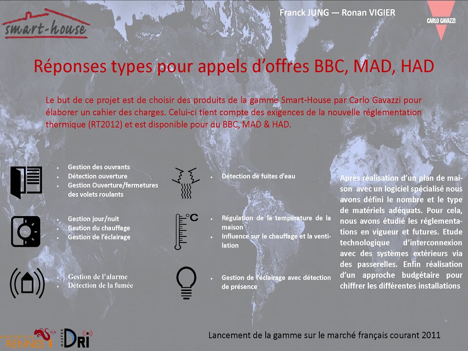 The home automation sector is growing rapidly at the intersection of the building, telecommunications and electronics sectors and new services for tertiary and/or residential housing ("intelligent building-housing"), whether tertiary (building automation) or residential (home automation), with a view to sustainable development.